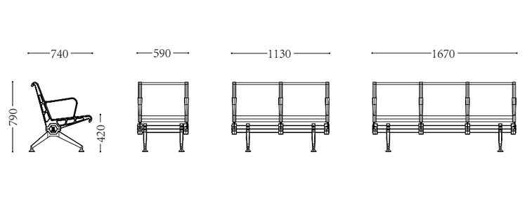 【扶手、脚、支架】: 采用铝合金材料,大型精铸模具,压铸成型后直接抛光,静电喷粉喷涂处理。