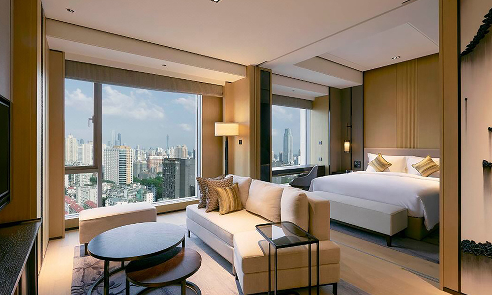 广州德安丽舍凯宾斯基酒店在国内的第二家酒店式公寓。酒店位于广州历史最悠久的中心城区,绿植和水景交融的入口中和了钢筋水泥的厚重。酒店每个房间设计以岭南艺术风格与欧式奢华微妙融合,独具匠心,充分展现出欧式现代装修风格,为客人提供舒适优雅的入住体验。挑高的大堂则更像一个起居室,融入了广州“花城”的美誉