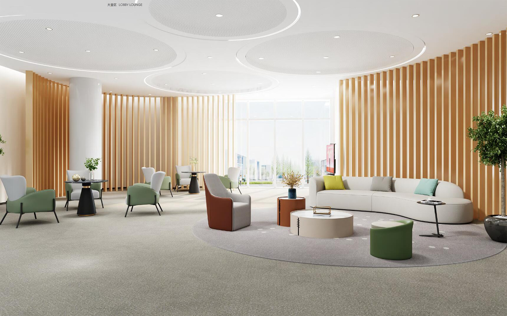 -实木沙发给予办公室一种经典和自然的氛围,尤其适合传统或自然风格的办公室设计。